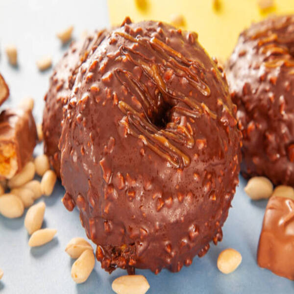 Dip cooled donuts into the glaze; optional: sprinkle with chopped peanuts.